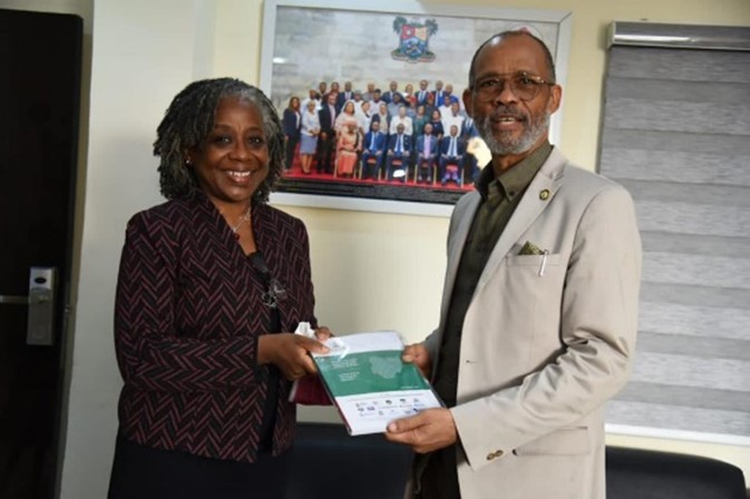 Handover of the Lagos State NAIIS Technical Report to the Lagos State Commissioner for Health, Dr. Akin Abayomi, by Dr. Sylvia Adebajo, Country Director, UMB Nigeria