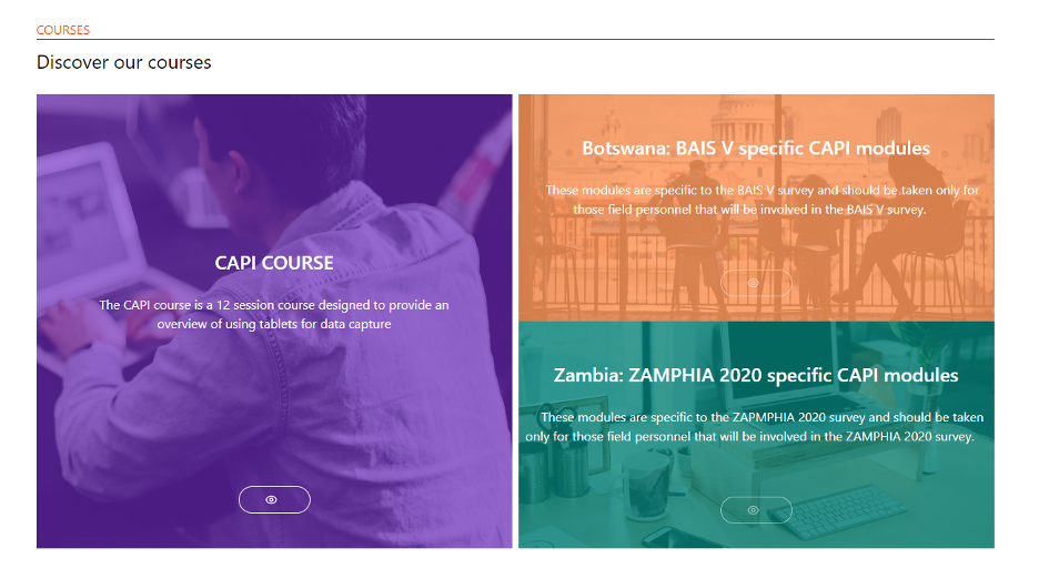 Implementing population-based household surveys during the COVID-19 pandemic presented a number of challenges, but it also drove innovation. To ensure standardization during central-level training while limiting the number of people in one room to accommodate physical distancing, we worked with our partner Stattis to create the PHIAcademy (http://academy.stattis.com/). PHIAcademy is an online training package for using the CSPro-based CAPI for household survey procedures. With this, we were able to deliver exactly the same content in the same way, even with field teams spread across 10 different rooms. During survey implementation, we were able to use PHIAcademy to provide refresher training for teams in quarantine as well as in the field when teams had questions about navigating different sections of the survey questionnaire.