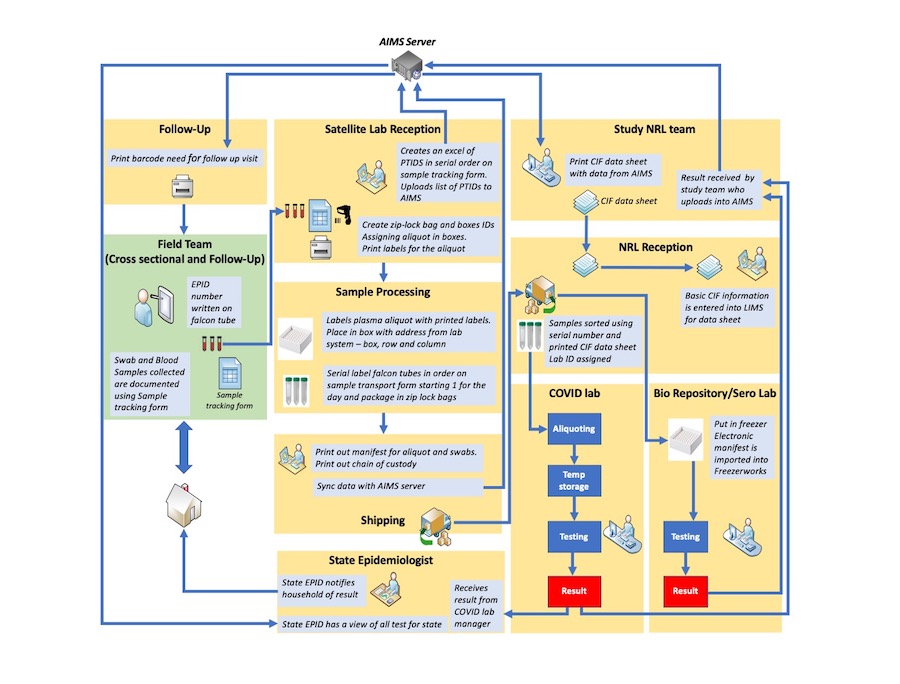 - State epidemiologists disseminated COVID-19 positive tests, and the survey team followed up with households where at least one positive participant was found.