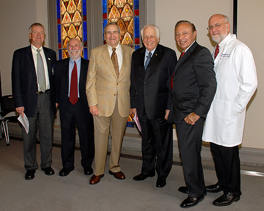 L to R: William Blattner, MD, Myron M. Levine, MD, DTPH, Stewart Greenebaum, Sir Gustav Nossal, AC, CBE, FRS, Robert Gallo, MD, and Robert Redfield, MD at the Annual Greenebaum Lecture series in 2007 when Sir Gustav Nossal, Professor Emeritus, The University of Melbourne (Australia) and Former Director, The Walter and Eliza Hall Institute of Medical Research, presented “The Twenty First Century: A Turning Point in Global Health Reform.” Since 2004, Marlene and Stewart Greenebaum have sponsored an annual lecture series hosted by the IHV. Speakers include persons who have made substantial scientific contributions and focus on bettering the human condition. Each year, IHV’s faculty invite leaders in the field of human disease to present this prestigious lecture before IHV and campus leaders, students, faculty and staff.