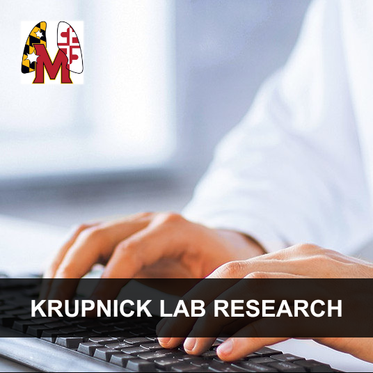 The Krupnick laboratory was established in 2007 at Washington University in St. Louis and relocated to The University of Maryland in June 2020. The laboratory focuses its translational research on two clinically relevant areas: Immunotherapy for Thoracic Malignancies and Lung Transplant Immunoregulation. In 2007, along with the laboratories of Daniel Kreisel and Andrew Gelman, the Krupnick laboratory developed the world’s first model of physiologic, vascularized, orthotopic lung transplantation in the mouse (1). This model is now utilized by multiple laboratories around the world to further understand lung transplantation physiology and develop new drugs to treat rejection. The model has been used by our laboratory to unravel lung transplant-specific immune responses, including the role of CD8+ T cells and eosinophils in the establishment and maintenance of tolerance (2),(3) and continues to be used to design better immunosuppression and immunomodulatory strategies for the lung.